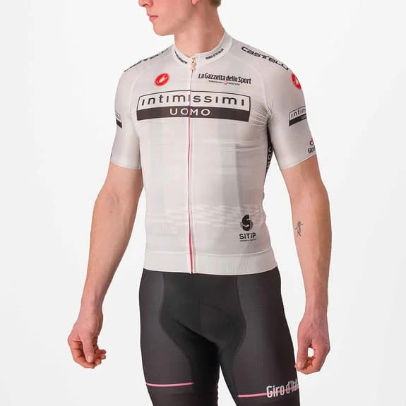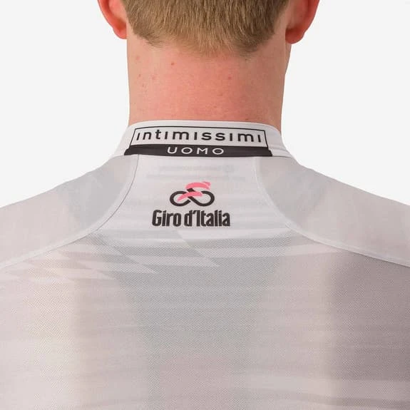 Le maillot blanc du Giro d’Italia est le vêtement qui rend hommage au meilleur jeune coureur, dans un blanc qui englobe toutes les couleurs, tous les espoirs, toutes les possibilités. Un prix et, en même temps, un souhait pour la plus belle page qui reste à écrire dans le cyclisme professionnel.