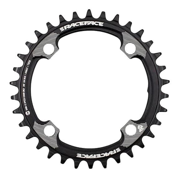 Le plateau Race Face Shimano 104 BCD Chainring peut être vissé à n’importe quel spider de 104 BCD et est rigide, transformant toutes vos « poussées » en un « go » direct.
